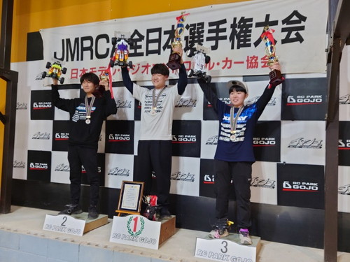 | 2025年11月29-30日の2日間, RC PARK GOJOにて、1/10EPオフロード全日本選手権が開催されました。 海保菜奈選手が4WDクラスで見事3位に入り表彰台を獲得!両クラスで山崎翔矢選手、井上清正選手も、見事Aメイン入りを果たしました! |
